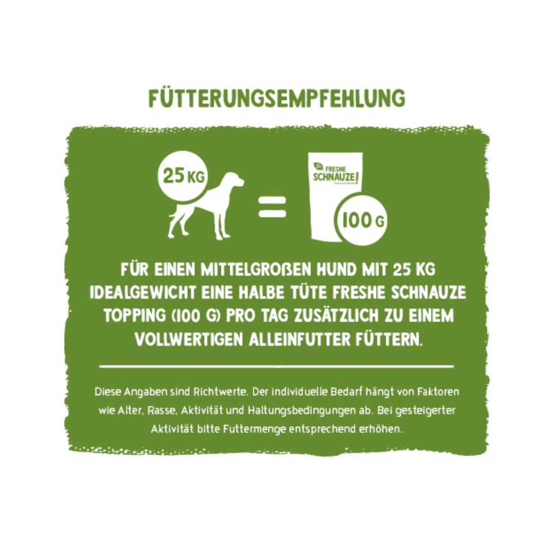 Die schonend dampfgegarten Gemüsemischungen aus hochwertigen Zutaten sorgen für eine schmackhafte Ergänzung zum täglichen Alleinfutter. Ob Trockenfutter, Nassfutter oder BARF – die Toppings lassen sich vielseitig kombinieren und bringen Abwechslung in den Napf.