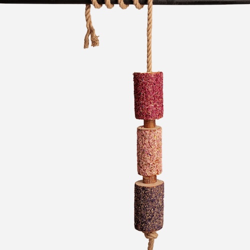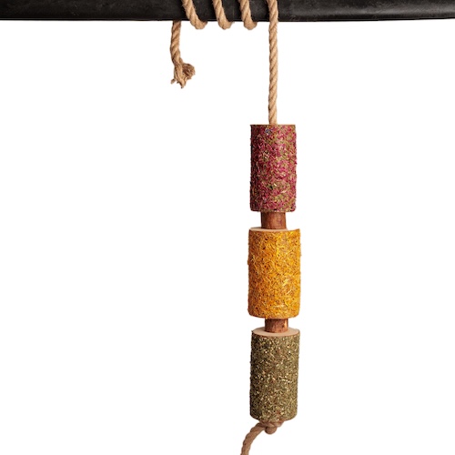 Die unterschiedlichen Strukturen und natürlichen Duftstoffe können das Erkundungs- und Kauverhalten fördern und so zur artgerechten Beschäftigung beitragen. Das Spielzeug eignet sich insbesondere für Pferde, die viel Zeit im Stall verbringen, und kann helfen, mehr Abwechslung in den Alltag zu bringen.