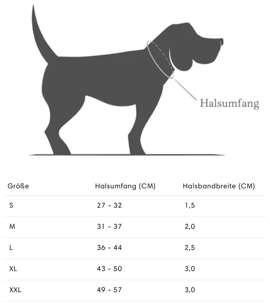 Beschreibung: Die Leder Hundehalsbänder und Hundeleinen der Hyde Park Kollektion werden in Handarbeit gefertigt. Verwendet wird besonders elegantes Rindsleder, das mit der Zeit eine unverwechselbare Patina entstehen lässt und somit ein Spiegelbild der zahlreichen erlebten Gassirunden wird. Durch die vegetabile Gerbung und anschließende Behandlung mit natürlichen Ölen und Wachsen entstehen einzigartige Farbnuancen, die dem Halsband eine besondere Individualität verleihen. Die gebürsteten Kanten des Halsbandes kreieren einen zusätzlichen lässigen Charakter. Da auf den Einsatz chemischer Fixiermittel verzichtet wird, kann das Leder einen Teil seiner Farbe abgeben. Das Hundehalsband ist in vielen Größen für kleine Hunde bis XXL Hunde erhältlich.