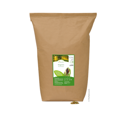Orgamin von PerNaturam ist ein Ergänzungsfuttermittel für Pferde auf Basis mineralstoffreicher Kräuter, Gemüse und Algen. Die rein pflanzliche Zusammensetzung kommt ohne synthetische Mineralstoffe oder Vitamine aus und bietet eine natürliche Ergänzung zur täglichen Fütterung.